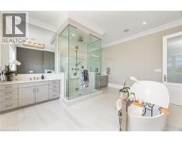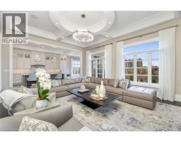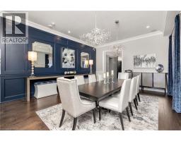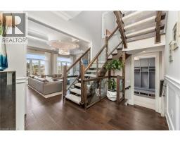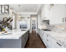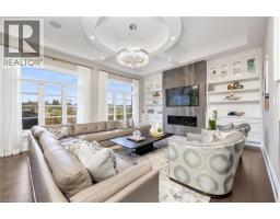 Welcome to this exquisite Fernbrook-built Rockefeller Elevation B model in Oakville's prestigious Glenorchy community. Offering over 3,800 sq. ft. of upgraded above-grade living space on a premium ravine lot, this home delivers true turnkey luxury.The main floor, professionally finished by Parkyn Design, boasts 11-ft smooth ceilings, porcelain tile, 11 baseboards, crown moulding, custom wainscoting, and designer accent walls. A chefs custom kitchen with double-stacked cabinetry opens to a panoramic breakfast/sunroom with breathtaking ravine views. The elegant family room features a built-in gas fireplace and custom shelving.A stunning floating glass staircase with skylight leads to a private office located between the main and second floors. The spa-like primary suite includes a walk-in closet, fireplace, and a luxurious ensuite. The second bedroom offers its own ensuite, east-facing windows, and a cozy bench. The third and fourth bedrooms share a beautifully appointed Jack & Jill bathroom. A convenient second-floor laundry adds to the functionality.The finished basement adds even more living space and features a home theatre with projection screen, a second kitchen, playroom, fifth bedroom, and a luxury bath complete with heated floors, steam shower, and sauna. Three oversized storage rooms provide ample space.Hundreds of thousands of dollars have been spent on upgrades throughout this meticulously maintained home. Located just steps to top-rated schools, scenic parks, trails, and the vibrant Uptown Core. (id:61594)
