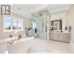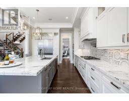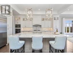Welcome to this exquisite Fernbrook-built "Rockefeller Elevation B" model in Oakville's prestigious Glenorchy community. Offering over 3,800 sq. ft. of upgraded above-grade living space on a premium ravine lot, this home delivers true turnkey luxury.The main floor, professionally finished by Parkyn Design, boasts 11-ft smooth ceilings, porcelain tile, 11 baseboards, crown moulding, custom wainscoting, and designer accent walls. A chefs custom kitchen with double-stacked cabinetry opens to a panoramic breakfast/sunroom with breathtaking ravine views. The elegant family room features a built-in gas fireplace and custom shelving.A stunning floating glass staircase with skylight leads to a private office located between the main and second floors. The spa-like primary suite includes a walk-in closet, fireplace, and a luxurious ensuite. The second bedroom offers its own ensuite, east-facing windows, and a cozy bench. The third and fourth bedrooms share a beautifully appointed Jack & Jill bathroom. A convenient second-floor laundry adds to the functionality.The finished basement adds even more living space and features a home theatre with projection screen, a second kitchen, playroom, fifth bedroom, and a luxury bath complete with heated floors, steam shower, and sauna. Three oversized storage rooms provide ample space.Hundreds of thousands of dollars have been spent on upgrades throughout this meticulously maintained home. Located just steps to top-rated schools, scenic parks, trails, and the vibrant Uptown Core. (id:61594)