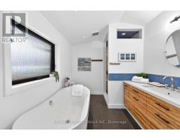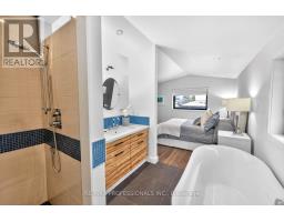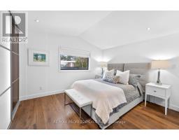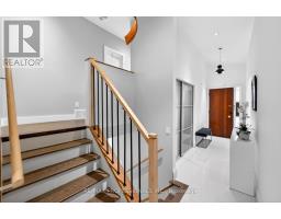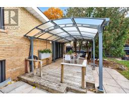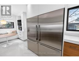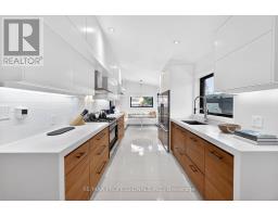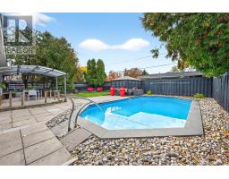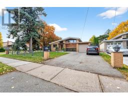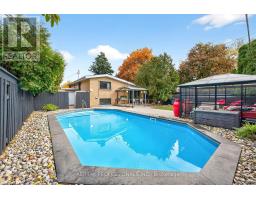 Welcome to this beautifully rebuilt mid-century style 4-level side split offering 3+1 spacious bedrooms and exceptional design throughout. Flooded with natural light from large windows, the home showcases a stunning custom Perola kitchen with full-height cabinetry, quartz counters with waterfall edges, integrated dishwasher and garbage system, double fridge, gas range, plus a dining area featuring built-in seating and cabinetry. The expansive living room impresses with engineered hardwood floors, soaring ceilings, pot lights, a custom gas fireplace, and a sliding door walkout to the back patio and garden. The upper-level primary suite is a true retreat with a luxurious 4-piece spa-like ensuite featuring a soaker tub and separate shower, an open-concept layout designed for optional sliding doors, and a wall-to-wall custom closet system with built-in storage and lighting. A second bedroom overlooks the front yard with a large picture window and double closet with built-ins. The lower level offers two additional rooms with a third bedroom and office or fourth bedroom. A remarkable underpinning renovation transformed the original crawl space into a full additional level of living space with a generous recreation room finished in engineered hardwood - perfect for a gym or media room, plus a finished laundry room with quartz counters, laundry sink, cabinetry, and rough-in for a 3-piece bathroom! Set on a stunning 60 x 120 ft corner lot, the backyard is a private oasis complete with a gorgeous pool, Jacuzzi hot tub, gazebo, interlock patio dining area off the kitchen, and a gas BBQ hookup! Get ready to host family & friends this summer in this fabulous yard! Move-in ready and beautifully finished, this exceptional home is close to shopping, restaurants, transit, schools, parks, highways, and the airport. (id:61594)