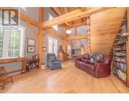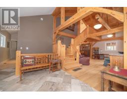 This SPECTACULAR 3-Bedroom 2175 sq. ft family home offers custom quality at every turn. Features include main floor entrance to an inviting front foyer, living room boats cathedral ceiling with large timber framing highlighting the excellent craftmanship, gleaming custom kitchen, 2 bedrooms, 2 baths and main floor laundry. Second level offers a spacious primary bedroom with 3pc. ensuite and large loft lounging area. There is a full partially finished basement with loads of potential, a beautiful 36'4" x 11'8" 3-season room off the back door which is ideal for those large family gatherings. Fabulous 3 car garage (53' x 31'6") with 16ft ceiling, in-floor propane heat, plus workshop area with second floor storage, plus additional large storage shed with 2 shipping containers attached. All this and more on a beautiful 19.7 acre wooded Lot just minutes to Town and the main snowmobile trails and miles of ATV trails. Don't miss it, call today! Minimum 24hr irrevocable required on all Offers. (id:61594)