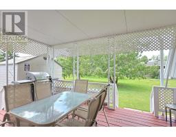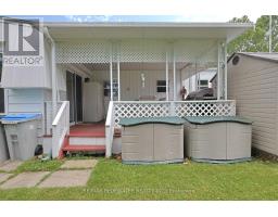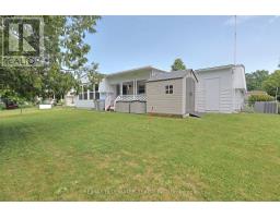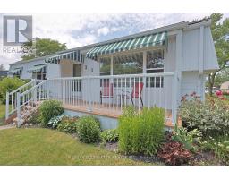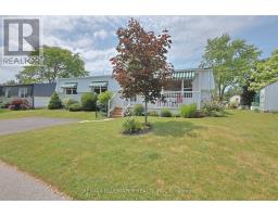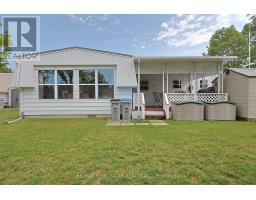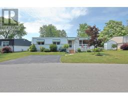 Site built updated bungalow in the land leased community of Grand Cove. Situated on a quiet street with great curb appeal from the landscaped gardens, front patio space, freshly painted exterior and updated window awnings. Inside, you have an open concept floor plan with the popular Newcastle II design featuring large principle rooms that are flowing with natural light. Spacious and bright U shaped kitchen with tile floors, white cabinetry, wood grain laminate countertops and skylight. Dining room off the kitchen that opens to the living room with laminate flooring throughout and a large picture window that overlooks the front patio space. Added living space at the back of the home with the built on family room that includes a gas fireplace and patio doors leading to your covered back yard patio space. Primary bedroom suite includes a walk in closet and full ensuite with laundry. Guest bedroom and full main floor bathroom complete the inside of the home plus allow friends and family to visit. The back yard gives you space from the neighbors with a green belt strip between the home, gas bbq hookup on the patio and additional storage in the garden shed. Grand Cove Estates is a land lease community located in the heart of Grand Bend. Grand Cove has activities for everybody from the heated saltwater pool, tennis courts, woodworking shop, garden plots, lawn bowling, dog park, green space, nature trails and so much more. All this and you are only a short walk to downtown Grand Bend and the sandy beaches of Lake Huron with the world-famous sunsets. Monthly land lease fee of $961.95 includes land lease and taxes. Great value at this price with a site built home under $300,000! A hard find in Grand Cove. (id:61594)