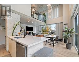 Rarely offered, this corner suite at King West Village Lofts is a sun filled two-bedroom, two-bath, two-storey condo that delivers a truly elevated living experience. Spanning a generous footprint, it showcases dramatic 18 foot plus ceilings, floor-to-ceiling windows, exposed concrete details, natural limestone accent walls and a series of thoughtful upgrades, including newly renovated stairs with a glass railing, new Caesarstone kitchen countertops, newly renovated bathrooms, updated light fixtures in both bedrooms and new flooring on the main level. The spacious, upgraded kitchen features full size stainless steel appliances, ample storage and a functional island perfect for effortless entertaining while the oversized southeast facing balcony extends your living space outdoors for morning coffees or relaxed evenings. The primary bedroom retreat includes a beautifully updated bathroom and a full wall of closets, and the expansive second bedroom easily adapts to guests, family or a generous home office, with every detail curated for comfort, functionality and style. This corner suite offers one parking space, one locker and an impressive amount of in-suite storage, with maintenance fees covering everything except cable. Perfectly situated near grocery stores, coffee shops, retail shops and restaurants, the condo is steps from the best of King West, Queen West, Trinity Bellwoods, Ossington, Parkdale and the waterfront, and minutes to transit, Billy Bishop Airport, Martin Goodman Trail, Budweiser Stage, BMO Field and easy highway access, providing an exceptional and truly turnkey urban loft lifestyle. (id:61594)