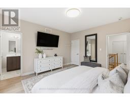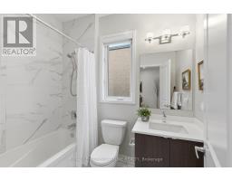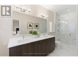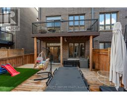 Step into this beautifully designed modern 3-bedroom, 4-bathroom end-unit freehold townhome, offering the feel of a semi-detached and filled with natural light throughout thanks to its generous 25-ft frontage! Inside, contemporary style meets everyday comfort with an airy open-concept layout, high ceilings, and sleek flooring. The welcoming living and dining areas flow into a modern kitchen featuring a massive island with seating for up to five people, gorgeous countertops, a rich backsplash, stainless steel appliances, ample cupboard and pantry space. The adjoining dining area walks out to a large private balcony, perfect for summer barbecues or quiet evenings outdoors. Upstairs, the primary suite provides a relaxing retreat with a modern ensuite bathroom featuring a double sink vanity and a huge walk-in closet. The additional bedrooms are bright and roomy, with the third bedroom featuring its own chic balcony ideal for enjoying lovely, quiet mornings. A convenient 2nd floor powder room adds extra functionality. On the main level, the walk-out to the backyard expands the living space, offering a flexible and seamless indoor-outdoor flow ideal for entertaining or relaxation. This level also includes a convenient powder room, part of the thoughtful design that provides washroom access on every level of the home. This home blends modern elegance with practical design, featuring a smart, efficient floor plan and convenient interior access to the garage. Located in a thriving community close to the hospital, parks, schools, shopping, trails, and transit, it delivers an exceptional lifestyle for families and professionals alike. (id:61594)