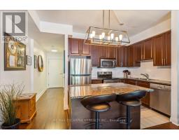 Luxury Living in the Heart of Port Credit. Welcome to North Shore, where upscale design meets unbeatable convenience. This stunning 1-bedroom + den suite offers bright, open-concept living with premium laminate flooring, updated lighting, and a thoughtfully designed layout perfect for both everyday comfort and entertaining. The sun-filled kitchen features granite countertops, a designer backsplash, double sink, and a spacious island overlooking the living and dining areas-ideal for hosting or enjoying casual meals. Step out onto your private balcony, an inviting extension of your living space and the perfect spot to enjoy your morning coffee. Relax in the generous primary bedroom, complete with double-door closets and large windows that flood the room with natural light. The spa-inspired bathroom showcases an updated vanity and a beautifully tiled tub/shower combination. The versatile den offers endless possibilities-home office, hobby room, library, or additional storage-tailored to your lifestyle. This unit truly has it all! Residents enjoy award-worthy amenities including a state-of-the-art gym, stylish party room, serene courtyard, and a breathtaking rooftop terrace with panoramic views. All of this just steps from the vibrant Port Credit community-renowned restaurants, boutique shopping, GO Transit, waterfront trails, and Lake Ontario. Luxury, convenience, and lifestyle-this is the one you've been waiting for! (id:61594)