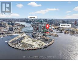 Experience luxurious island living in this beautiful condo in a highly energy-efficient LEED-certified building with views of Parliament Hill & waterfront views of the Ottawa River. The unit features a bright, open concept main living area with 9' ceilings and expansive south-facing windows that fill the space with natural light. The living room flows seamlessly to the balcony, offering a generous outdoor space ideal for both relaxation & entertaining with waterfront views. The kitchen is both functional and stylish, complete with quartz countertops, white cabinetry, stainless steel appliances and a large island with a built-in wine rack and plenty of room for seating, making it great for hosting. The primary bedroom is spacious & features large windows, newly installed custom closets and an ensuite with heated floors and a walk-in shower. A second room is great as a home office or guest bedroom, and it also benefits from excellent natural light. The second full bathroom boasts stunning sleek finishes with a tub/shower combo. This apartment includes in-unit laundry, a spacious storage locker, and an underground garage parking space in an excellent location right by the elevator. Residents of the Kanaal building enjoy premium on-site amenities, including a fitness room located on the same floor as the unit, a library, a pet wash station and secure bicycle storage. Perfectly positioned, this location offers the best of downtown living in a community built for what's next. Just steps to Pimisi LRT, you're seamlessly connected across the city, with bike paths and scenic waterfront trails right outside your door. Set along the Ottawa River & minutes from the Canadian War Museum, the new Ottawa Public Library and neighbourhoods like Hintonburg, Little Italy & more. With LeBreton Flats continuing to evolve, including plans for the likely future home of the Ottawa Senators, this is a rare opportunity to be part of one of the city's most exciting and transforming areas. (id:61594)