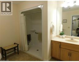 LARGEST MODEL - Corner Suite on the TOP FLOOR in the popular Village By the Grand Adult Lifestyle Building. 1352 sq.ft 2 Bed PLUS DEN unit with 100 sq.ft. Private, South Facing Balcony overlooking Lock Street ,one of only 6 units with COVERED parking spot. The Cambridge Plus model offers 2 French Door Walk-Outs to your Balcony (Liv. Rm & Primary BR), Primary Bedroom w/Double Closets & Lots of Windows, Huge Primary Bath w/Walk-In Shower w/Built-In Seat, 2nd Bedroom with Walk-In Closet & 2pc Ensuite Bath, Open Concept Liv/Din & Kitchen with Breakfast Bar, Plentiful Cupboards & Pocket Door to Laundry Room. Extras & Features Include, Custom Window Blinds Thru-Out, Pocket Doors, 6 Appliances, Covered Parking Space, Storage Locker all Set in this exclusive Building with Beautiful facilities for your use - Indoor Spa Pool, Exercise Room, Fireside Lounge, Games Room and 2 Craft Rooms, Huge Community Hall, On Site Superintendent , Outdoor Covered Patio, BBQ, Lots of Social Events too! Perfectly located next to the Haldimand War Memorial Hospital & Pharmacy, and just steps to the Grand River, Parks, Shops and Downtown. (id:61594)