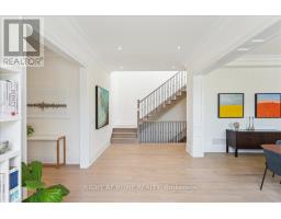 Welcome to The Royal Oakville Club, a prestigious enclave in Old Oakville. This sun-filled corner-lot home, built in 2016 and extensively customized, offers over 5,000 sq ft of refined living space, including a fully finished lower level.The main floor features open-concept living, a spacious family room with custom built-ins and gas fireplace, and a designer Downsview kitchen with quartz countertops, large island, Wolf/Sub-Zero appliances, custom pantry, and mudroom. High-end finishes include engineered white oak floors, bespoke millwork, and designer lighting.Upstairs are four generous bedrooms, each with ensuite or semi-ensuite baths and custom closets. The primary suite boasts a spa-like ensuite, two walk-in closets, and a third reach-in.The professionally finished lower level offers a large rec room, media center with built-ins, ample storage, and a full bathroom. Outside, enjoy a beautifully landscaped, tree-lined yard with irrigation. The fully finished garage and integrated security/camera system add both function and peace of mind. In addition, security film installed on two lower level windows. Entire home painted in 2022. A rare turnkey luxury home in one of Oakville's most sought-after communities, blending elegant design, modern upgrades, and an unbeatable location.A rare turnkey luxury home in one of Oakville's most sought-after communities, blending elegant design, modern upgrades, and an unbeatable location. (id:61594)