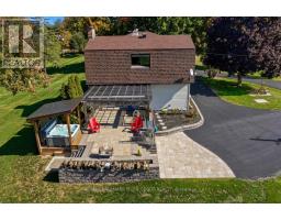 Welcome to 3172 8th Line Rd where you will experience the perfect blend of the peace & tranquility of country living, combined w/the elevated tastes of premium updates. This home truly has it all. From the manicured lawn, to the perfectly placed landscaped beds; the outdoor appeal radiates. The kitchen has been completely reimagined to include finishes that are magazine worthy. Including crisp, white cabinetry w/pot & pan drawers, stylish backsplash, dedicated coffee station, 10.5' island w/breakfast bar seating, SS appliances & charming farmhouse sink. The dining rm pays tribute to century old finishes w/beautiful tin ceiling. An original door leads to the covered front porch. At the back of the home is the spacious great room. It includes a lrg family room area for relaxing & striking, 2 storey brick & barn board accent wall behind the wood stove that enhances the space beautifully. A Pinterest worthy powder rm completes this lvl. The HW staircase leads to the 2nd lvl & a spacious loft space that is open to the great rm below. The spacious primary bedroom features a custom wardrobe & WIC & access to the beautifully updated 3pc ensuite complete w/glass shower & custom vanity. Both secondary bedrms are generous in size & feature ample closet spc. The updated main bath features a beautifully tiled tub/shower, custom vanity & beautifully tiled floors. The LL is unspoiled & currently allows for 2 separate workshop or hobby spcs, lrg closet & an abundance of storage spc. This home sits on a post-card worthy, 3.78-acre lot. The back stone interlock patio features a dining area under the pergola w/space to BBQ & luxurious hot tub. A sizeable detached garage makes for a fantastic separate workshop or home-based business. It allows for ample storage of your outdoor maintenance tools & can also accommodate small to full size vehicles. The rolling lawn is dotted with perfectly placed trees to allow for exceptional privacy. (id:61594)