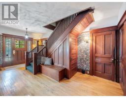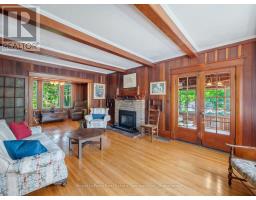 Welcome to the landmark Cudmore Farm House in south Oakville with almost 150 of frontage on Lakeshore Road West. An extremely private 1/3 acre estate property with circular driveway entrance to a grand 3-storey residence with over 3750 square feet of living space above-grade. Built on a solid poured-concrete foundation with brick construction and steel roof, this home is very livable but ready for renovations to create a contemporary home for the next generation. The beautiful front foyer is a grand entry hall with Arts & Crafts staircase giving understated Downton Abbey vibes. The current owners updated the residence with an open concept kitchen/family dining room across the west side of the house which is flooded with sunlight. The kitchen features some cool, vintage mid-century modern appliances, a centre island and a gas fireplace. The beautiful formal living room is lined with rare cypress tongue & groove panelling and features a brick gas fireplace, stained glass french doors and opens to a library with built-in glass bookcases. Two patio doors lead to a large sunroom which spans the east side of the house. Incredible original features include second floor sleeping porches on both the front and rear of the house and a back staircase for servants. 4.5 bathrooms and a total of 7 bedrooms on the second and third floors. The primary suite in the southwest corner has a dressing room and a large ensuite bathroom with glass walk-in shower. Second floor laundry room. High ceilings and hardwood floors throughout. Newer forced air gas furnace and central air conditioning. For the price of a subdivision house, this exceptional large property and grand 3 storey home is a place for a family to re-imagine, grow into and cherish for a lifetime. Walking distance to Bronte Village, the harbour and the beach. Tour this exciting property and discover how it could become your dream home. (id:61594)