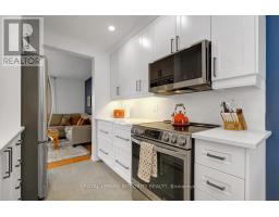 Pride of ownership shines in this beautifully updated 3-bedroom semi-detached home in sought-after Tanglewood. The bright main floor features eco-friendly pre-finished hardwood and a fully renovated kitchen (2024) complete with quartz counters, modern backsplash, and new appliances, plus new front hall tile (2025),and an updated powder room (2025). Patio doors lead to a large deck and private fenced yard backing onto serene green space with no rear neighbors. This second level offers a spacious primary bedroom with double closets, a refreshed full bath (2026), two generous secondary bedrooms, and a full interior paint (2026). The finished lower-level family room adds excellent living space. Notable updates include the roof (2013), front windows (2014), and A/C (2015). Situated on a quiet, family-friendly street close to parks, transit, and the walking trails of Pinhey Forest, this is a true move-in ready home. (id:61594)