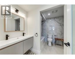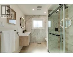 Welcome to this stunningly renovated 2-storey detached home in Burlington's highly sought-after Headon Forest community. Boasting over 2,900 sq ft of total finished living space, this residence features a modern, open-concept design highlighted by brand-new wide-plank flooring, recessed pot lighting, and contemporary finishes throughout. The heart of the home is a bright, designer kitchen equipped with sleek cabinetry, stone countertops, stainless steel appliances, and a breakfast area that walks out to the rear deck. The functional main level includes a spacious living room, a formal dining area, and a cozy family room with a classic tiled fireplace. Upstairs, the massive primary suite serves as a true retreat, featuring multiple windows for natural light and a spa-like 5-piece ensuite with a glass-enclosed rainfall shower, floating vanity, and marble-style tiling. Three additional generous bedrooms share a beautifully updated 4-piece bathroom. The fully finished basement adds significant value, offering a large recreation room, a 5th bedroom, and a modern 4-piece bath—perfect for an in-law suite, guest wing, or home office. Additional features include a main-floor laundry room, an attached 2-car garage with inside entry, and a double driveway. Situated on a 45-foot lot near top-rated schools, lush parks, and convenient shopping with easy highway access, this turnkey home offers the perfect blend of style and family-focused functionality. (id:61594)
