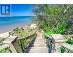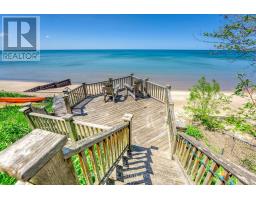 Charming lakefront retreat on 75ft of stunning shoreline overlooking the crystal blue waters of Lake Huron. Tucked away on a private road, surrounded by mature trees, sits a beautifully crafted beach house with coastal inspired design & west facing windows showcasing remarkable sunsets over the water. From the courtyard you are welcomed through double doors to an inviting, character filled space. Sun streams in from wall to wall windows highlighting the warm wood beams, staircase railing, wood clad vaulted ceilings & natural toned hardwood flrs. Featuring ~3,000 sq.ft. of living space, this thoughtfully designed home offers 4 bedrms & 2 full bathrms on the main floor. The loft/mezzanine boasts a 5th bedrm, 1/2 bathrm & flexible living space where you could set up a cozy reading nook, creative artist studio, home office or all of the above. At the heart of the home lies the open-concept living area with a stone surround gas fireplace, spacious kitchen with breakfast bar & a built-in dining nook. Imagine the fun gathering as everyone sits down to dinner with the lake as your backdrop. Wake up to the sound of gentle waves hitting the shore from the primary bedrm retreat that offers privacy with your own ensuite bathrm & walk-in-closet. Sliding doors from the main living area provides for a seamless flow between indoors &outdoors. Stepping outside to the gorgeous backyard, your choice of where to relax are many - be it on the stone patio with hot tub, down on the deck overlooking your private beach or sunbathing on the sand at the waters edge.Although you feel far away from it all, necessities are close by & you are only minutes to the beachside community of Brights Grove. Enjoy paddle boarding, kayaking & boating - or stay on land with tennis & pickleball courts near by. Whether you are dreaming of year-round beachside living, planning family getaways or looking for a home you could occasionally rent out as an AirBnB look no further than this exceptional property! (id:61594)