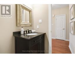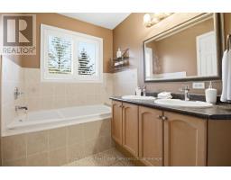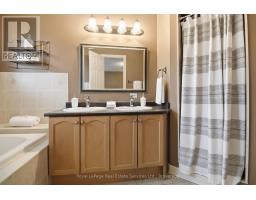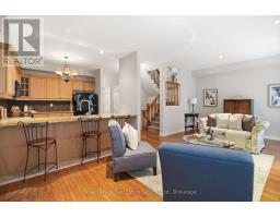 Stunning executive condo townhome in the highly sought-after Glen Abbey community. Beautifully maintained and thoughtfully upgraded, this elegant residence showcases hardwood flooring, stylish lighting, and timeless finishes throughout. Offering over 2,000 sq. ft. of refined living space, the home features 2 bedrooms and 2.5 bathrooms. The dining room is filled with natural light from large windows and highlighted by a classic chandelier and rich hardwood floors. The well-appointed kitchen features light maple cabinetry, granite countertops, and a spacious peninsula island with a undermount double sink, perfect for everyday living and entertaining. The open-concept living room offers hardwood floors, pot lights, bright windows, a cozy gas fireplace, and sliding doors leading to a private balcony. Upstairs, the spacious primary suite features bright windows, a walk-in closet, and a 5-piece ensuite with double vanity, soaker tub & separate shower. The spacious second bedroom is complemented by a 4-piece main bathroom and a convenient second-floor laundry room. The ground-level recreation room provides additional living space with hardwood floors, a corner gas fireplace, large window, and sliding doors with walkout to the backyard, along with direct access to the garage. The garage also features an adjacent storage area measuring approximately 20 ft x 4 ft, providing ample space for a motorcycle, bikes, or additional storage. Tucked within a quiet enclave just steps from the scenic trails of 16 Mile Creek, this exceptional location offers convenient access to parks, restaurants, shopping, major highways, Monastery Bakery, and the renowned Glen Abbey Golf Club. (id:61594)