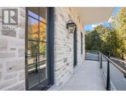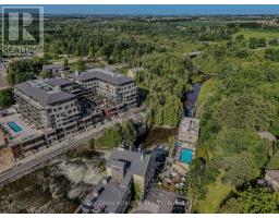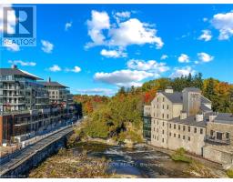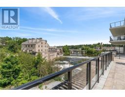 This one of a kind 2 bedroom plus den, 3 bath suite is an expansive 2,330 sq ft Custom Residence. Perfectly designed with a traditional home layout, its ideal for downsizers transitioning to condo living offering plenty of space and the ability to keep your large furniture. The open concept layout includes 10' ceilings and features a spacious kitchen with a large island with seating for four, and a rare walk-in pantry. A walkout leads to a private patio, perfect for outdoor dining and relaxation. The generous dining room accommodates a large table and is surrounded by windows with views of lush greenery. The open living room, with a cozy gas fireplace, offers space for multiple seating areas. Wall-to-wall windows frame stunning views of the Elora Gorge, the Elora Mills stonework, and Tranquil River views. Retreat to one of two expansive primary suites, each with walk-in closets, ensuite bathrooms, and walkouts to a private balcony overlooking the river. Fall asleep to the soothing sounds of flowing water. A versatile den is ideal for an office, TV room, or guest room. Additional highlights include being the only residence in the building with large laundry room complete with cabinetry and sink, gas fireplace, indoor parking with EV charger, and a storage locker just steps from the front door. Located on the highly desirable riverside trail level, this unit is especially appealing to pet owners and those who value the option of having direct access without reliance on an elevator. Just steps from Elora's top restaurants, shops and cafes, residents also enjoy resort style amenities including a Concierge, Lobby Coffee Bar with daily fresh pastries, Furnished Outdoor terrace, Elegant Lounge and Party Room, Fitness Center, Yoga Studio and Outdoor Pool with Spectacular River Views!! (id:61594)