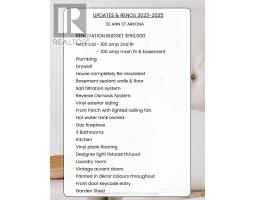Discover Arkona - Lambton Shores best kept secret. This charming town is minutes from Strathroy, 15 mins to Lake Huron and a short drive to London. A stones throw from our Feature Home is Rock Glen Conservation on the Ausable River, know for it's 10.7 meter waterfall, hiking trails, picnic pavilions and playgrounds: Medical Centre: Dental, Golf course & Academy and more. This is a thriving community with new housing developments upward past the $1 million mark. Our Featured 4 bedroom, 3 bath home with 2 driveways, has been beautifully reno'd throughout: Plumbing, Electrical, Drywall, most Never Windows, Insulation, Water Filtration System, Flooring, Covered Porch/Deck, and more. From the moment walking into this stunning home, the level of design is apparent. The main floor consists of a grand living room, made cozy with a new fireplace; a bright central dining room accommodates large gatherings; family room; new 4pc bathroom; mudroom with walk out to a covered deck; office; stunning new kitchen which boasts high-end stainless appliances, island, coffee station and corner eat-in seating. Off the kitchen is a laundry room with a walk out to the covered deck. The second floor boasts a new 4pc bath and 4 large bedrooms, one being a secret "Narnia" room. The full height basement has 3 rooms, one being a huge utility/workshop space; new 2pc bath. The backyard is wonderfully private with mature evergreens; a dog run; gazebo for Alfresco dining: garden shed and a 2nd shed/workshop with hydro complete with $1500 in shelving. This lovely home had a past life as a duplex and can easily be converted back. New 100 amp 2nd floor, new 100 amp for basement and main. Main floor family room & office can convert to bedrooms if needed. Truly a one-of-a-kind home. (id:61594)