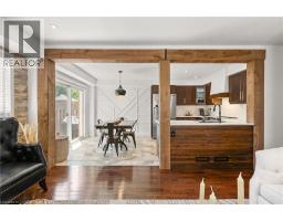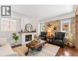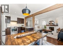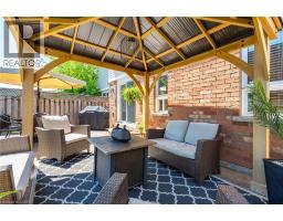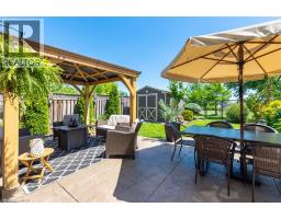Every detail of this property is on point. The finishes inside and out are magazine worthy. With over 2,400 sq ft of usable space across all three floors, there’s plenty of room for the whole family. As soon as you arrive, you’ll notice the landscaping, aggregate stone driveway, stamped concrete accents, walkway to the backyard, and contemporary front door. Inside, you'll find custom details throughout, including feature walls, upgraded lighting, hardwood and ceramic flooring, and wide luxury vinyl plank. The main level features a spacious, light-filled living room, a stylish powder room, an access door to the garage, a formal dining room, and a large kitchen with quartz counters, Frigidaire Professional appliances, a custom hood fan, black fixtures, and sliders to the backyard. Step outside to the stamped concrete patio with a custom gazebo lounge, separate dining area, storage shed, and views of the park. Upstairs offers a primary suite with a five-piece ensuite and an oversized walk-in closet that can easily double as an office space. Two additional bedrooms (one with its own walk-in closet) and upper-level laundry complete the space. The finished basement is ideal for entertaining, featuring a custom media wall, fireplace, beverage bar with wine fridge, and ample storage. Located very close to schools, parks, trails, transit, shopping, and major highways. (id:61594)