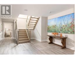 Discover the epitome of luxury living in this impeccable open-concept bungalow. 2019 custom build, sitting on an expansive tree-lined lot - 32 Breckenridge Blvd evokes the tranquility of Muskoka. With a total finished area of 4200 sqft, this residence showcases master craftsmanship while balancing contemporary aesthetics & comfort. From the moment you step onto the driveway attention to detail in this young home is evident. The open-concept design seizes an awe factor with a picturesque view of the ravine. A neutral palette accented by pops of colour emphasizes custom millwork as seen with the cheerful bench in the entryway. Capturing the fundamentals of single-level living is the notable floor plan. A bespoke kitchen is a dream for entertaining with high-end appliances selected for their style & performance to fulfil the chef's needs; two wall ovens with one using steam, pro series gas range, filler faucet, wine fridge, & built-in coffee station for ultimate comfort. An expansive island seats the whole family & serves as the hub of activity. Leading to a private covered patio featuring a chalet-worthy outdoor FP, gas hookup & entertainment area. The main level also has a formal dining rm with breathtaking feature windows & coffered/tray ceiling, as well as a living room with a gas FP flanked with built-in display shelves. An inviting powder rm & dreamy laundry encompass beautiful finishes with extra touches to make this often-forgotten area particularly special. The primary bdrm has a walk-through dressing hall that leads to an incredible ensuite- that's simply luxurious. The lower level feels anything but, with oversized windows positioned to brighten the space. Two additional bdrms, a massive recreational room & a full bath complete this level. Escape to this surprising central location & leave the hustle & bustle of the city behind. Top Public/Private Schools, Parks, Trails, easy highway access with a beach, marina, & so much more nearby! Luxury Certified (id:61594)