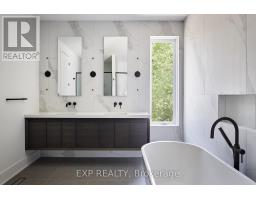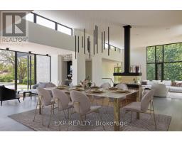 Don't be deceived by its exterior this home may appear to be a modest bungalow, but it offers over 8,000 sq. ft. of exceptional living space. Awarded Best Net Zero Home in Canada (2024), 32 Clovelly Rd is an architectural gem in Rothwell Heights, set on a private 200' x 150' ravine lot with natural limestone and a 20' cliff backdrop! Featuring 5 beds, 5.5 baths, soaring 14' ceilings, a 4-sided fireplace, and expansive windows with treetop views, this smart, energy-efficient home blends luxury, innovation, and sustainability in one remarkable package. (id:61594)