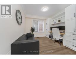 Welcome to this meticulously maintained detached home with a double-car garage, nestled on a quiet and highly sought-after circle. This residence showcases a blend of luxury and functionality, beginning with an impressive custom double-door entry that leads into a bright main floor enhanced by rich hardwood flooring throughout. The formal living room boasts a large window complemented by elegant crown molding that adds a refined touch. Adjacent is a separate dining room with coffered ceilings. A dedicated office, enclosed with classic French doors and custom built-in cabinetry. The chef-inspired kitchen features top-of-the-line built-in stainless steel appliances, a spacious center island with premium quartz countertops, and extended custom cabinetry with under-cabinet lighting. Additional highlights include pot lights, a hidden pantry, and a seamless flow into the adjoining family room. This inviting space is finished with a stunning quartz feature wall, a gas fireplace, coffered ceilings, and ambient lighting. Upstairs, you'll find four spacious bedrooms. The primary retreat includes hardwood flooring, pot lights, a custom walk-in closet, and a luxurious 5-piece ensuite with dual vanities, a soaker tub, and a separate glass shower. The additional bedrooms are bright and generously sized. The finished basement offers even more living space with laminate flooring, pot lights, a bedroom, and rough-in for a future kitchen, perfect for extended family or an in-law suite. The exterior is equally impressive, with patterned concrete upgrades in both the front and backyard. The backyard oasis features a composite deck with built-in lighting and an 8-person spa swim pool, making it the ultimate space for entertaining. Ideally located in a family-friendly neighborhood, this home is within walking distance of Southfields Community Centre, shopping, places of worship, and parks and provides easy access to major highways. (id:61594)