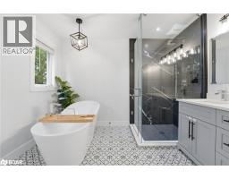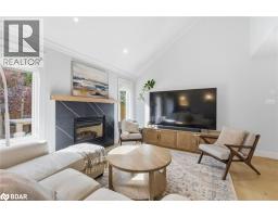 Top five (5) features of this home. (1) Over 3,000 ft2 of living space and 108' frontage on a quiet cul-de-sac, this home welcomes you to a totally private mature lot. (2) Pride and Quality workmanship evident throughout. Enter through a new modern door into an open concept modern kitchen/dining/living area with wide plank engineered hardwood, quartz countertops, elevated ceiling and gas fireplace (2021). (3) Great-sized 3+2 bedrooms complete with a Gorgeous primary complete w/5 pc ensuite including soaker tub and heated floors. (4). Completely finished lower level with lots of room (1,308 ft2) to make your own complemented by 2 simple and and beautiful bedrooms with 3-pc WR w/heated floors. (5) Professionally landscaped backyard (July 2024) with new topsoil, grading, drainage, and lush sod for a vibrant, low-maintenance lawn. Elegant flagstone pathway along the home and custom fence with natural stone steps (Grand River Stone) offering direct access to the pedestrian bridge and downtown. Refinished custom wood shed with new footings, roof, and stain. Spacious wood deck, beautifully sanded and re-stained in 2023, perfect for outdoor entertaining and relaxation..Decadent. Charming. Home. Don't miss it. (id:61594)