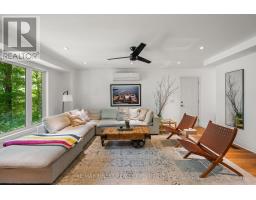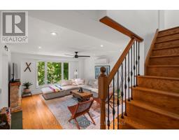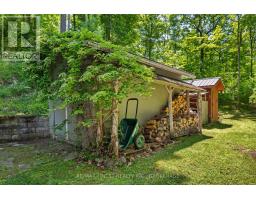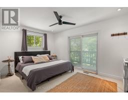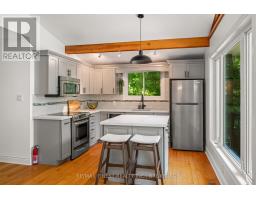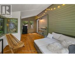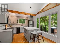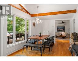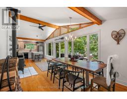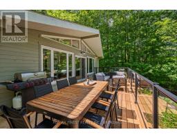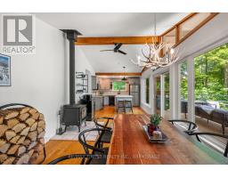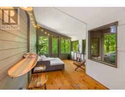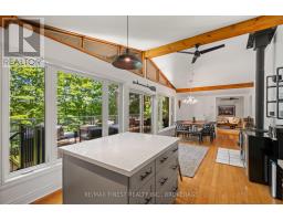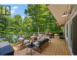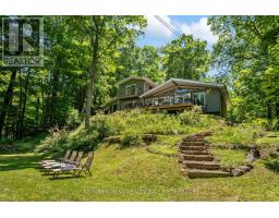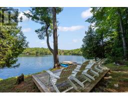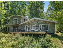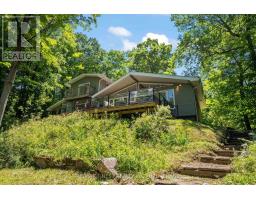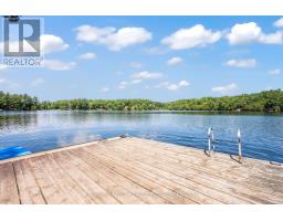 This 1890 sq ft custom-built, year-round 5-bedroom, 2-bath home on the pristine shores of Thirteen Islands Lake. Tucked into over 1.4 acres of private, wooded land, this peaceful retreat offers clean waterfront, gorgeous views, excellent drive up access and a nearby boat launch. Inside, you'll find a bright, open-concept layout featuring cathedral ceilings, a cozy wood stove, and wall-to-wall windows overlooking the trees and water. The kitchen and dining area open onto a brand new 30-ft deck (2024), perfect for entertaining. The main floor includes three bedrooms, a 4-piece bath, and an updated screened-in sunroom (2021). Upstairs, the private primary suite features a 3-piece ensuite, walk-in closet, and its own balcony with stunning lake views. A second upstairs bedroom doubles as an office or guest space. Major updates include: ductless heat pump/AC (2025), new waterfront deck (2021), water pressure tank(2025), septic bed emptied (2024), and brand new fridge, washer/dryer, and propane fire pit. This turn-key home is being sold fully furnished with all water toys (kayak, canoe ,paddleboard, 12-ft aluminum boat with motor) and property maintenance tools included. Proven short-term rental income of $50k + from July to September, with potential for year-round bookings and requests already into 2026. A rare chance to own one of cottage country's best-maintained and most charming lakefront homes for your family or a turn-key high earning passive income investment property. (id:61594)