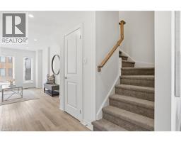 Welcome to 32 Radison Lane in Hamilton. This beautifully maintained end unit townhouse offers three levels of bright and functional living space with thoughtful upgrades throughout. With windows on multiple sides, this home enjoys additional natural light and a spacious feel that sets it apart. The main level features an inviting open concept living and dining area, perfect for both everyday living and entertaining. The upgraded kitchen showcases quartz countertops, a stylish tile backsplash, stainless steel appliances, and ample cabinetry, while additional pot lights enhance the modern atmosphere. Premium vinyl flooring and upgraded porcelain tile add both durability and elegance. Upstairs, you will find three generously sized bedrooms, including a spacious primary retreat featuring two walk in closets, offering exceptional storage and comfort. Brand new carpeting throughout the upper level adds a fresh and cozy touch. The home includes 1.5 well appointed bathrooms designed for convenience. The lower level provides flexible additional living space, ideal for a home office, gym, or recreation area, with direct access to the attached garage. Located in a well maintained community close to shopping, dining, transit, and excellent schools, this move in ready home offers comfort, style, and convenience. (id:61594)