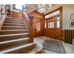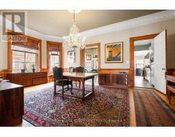 Magnificent, stately 5,500 square foot Victorian style, all brick, 3 storey Triplex which includes a separate 52 x 116 foot vacant development lot. Both the home and the lot back onto a City rear laneway with access to the detached double brick garage plus outside parking spot. R4UB[480] zoning allows many specific uses, diplomatic mission, business uses, and various types of multi residential buildings/apartments. Ideal for a family home as well. Total lot size is 105 x 116 feet which is already severed into 2 parcels. The spacious 2,159 sqft ground floor apartment offers a large entrance vestibule with wide oak staircase leading to the second floor. From the pictures, note the large rms and unique intricate features along with the rich woodwork , high ceilings with unique crown mouldings. The front bright , LR has a fireplace, opens to a large dining room giving way to accessing the family room, the eating area with access to the covered deck, and galley kitchen with a laundry area and secondary stairs to the basement, access to the rear yard and double garage. By the main entrance to the apt there is a bedroom or den with FP, down the hall is another bedroom plus 4-piece bathroom. From the hall you also have access to the finished recreation room in the basement with two separate bathrooms, another laundry room , storage rooms, along with the utility rooms. The second floor is accessed from the main entrance or the separate side door entrance accessing the third floor as well. Large 2,065 sqft , 2 bedroom apt with separate LR, DR, Family room, eat-in kitchen, laundry hook ups, and a four piece bathroom. The 1,276 sqft third floor has 2 bedrooms, a four piece bathroom, separate kitchen and large living and dining rooms. All apartments are currently vacant. The home is being sold "as is, where is" . Ideal opportunity for builders/developers, investors, or retain this grand home for family living as it's current use with a large landscaped garden area. (id:61594)