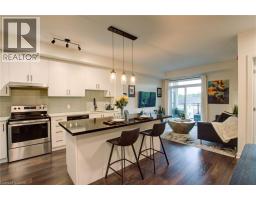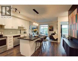 $623.99 MonthlyCheck out this amazing unit in the Trendy Affinity Condos! Living room, bedroom and terrace offer amazing sunset views of the Escarpment! Upgrades in this lovely high ceiling 1bdrm w den/workspace and 3pc bathroom. In suite laundry, master bedroom closet organizer. Large designer look kitchen area, loads of counter & cupboard space with adjacent bright living room perfect for entertaining. Newly replaced expanded quartz black island counter top with seating for 4-6 great for cooking and entertaining. Brand new stylish cabinet and door black hardware. Matching new quartz black counter in 3pc bathroom with stand up upgraded shower and tiled bathroom. Brand new fashionable black light fixtures throughout. TWO OWNED side-by-side underground parking spaces!! Loads of building amenities roof top patio with lounge area with fireplaces and barbeques. Work out gym with quality equipment, workout and yoga room. Party/games room, conference room, lots of visitor parking with an electric car charger station available. Unit locker is owned and located on the same level, convenient for storage. Providing modern living in the vibrant Aldershot neighbourhood! Located near GO Station, major highways, the downtown core, shopping and more! Lock and-leave lifestyle perfect for busy professionals or empty-nesters. (Investors welcome too...A+++ tenant offering to stay on for additional years). (id:61594)