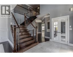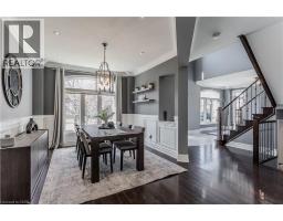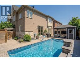 Welcome to this stunning family home in Burlington’s prestigious Alton Village, set on a premium corner lot that fills the home with natural light. Designed for modern family living, this home blends elegance, comfort, and functionality—highlighted by a truly exceptional backyard oasis. From the moment you arrive, the curb appeal stands out with a stone walkway, stone and brick façade, manicured gardens, and landscaping. Inside, the main floor offers 9ft ceilings and an open-concept layout with hardwood floors, pot lights, crown mouldings, and wainscotting throughout. The bright living room features oversized windows, while the upgraded chef’s kitchen is the heart of the home—complete with granite countertops, tile backsplash, custom cabinetry, SS appliances, gas stove, wall oven, and a breakfast nook with walkout to the backyard. The inviting family room showcases a gas fireplace and built-in media wall, complemented by a formal dining room, convenient laundry, and powder room. Upstairs, hardwood continues throughout, leading to a spacious primary retreat featuring a window bench and a luxurious 5pc ensuite with dual sinks, a soaker tub, and a walk-in glass shower. Three additional generously sized bedrooms and two full bathrooms provide ample space for growing families. The fully finished lower level offers incredible versatility with a complete in-law setup, including a full kitchen, large rec room, additional bedroom, and a spa-like 3pc bathroom with a walk-in glass steam shower. Step outside to your private backyard paradise—perfect for entertaining and making lasting family memories. Enjoy a fully fenced yard with an interlock stone patio, a stunning inground pool with a waterfall feature, and a fantastic cabana complete with a bar. This outdoor space is truly a showstopper. Ideally located close to top-rated schools, parks, shopping, and all everyday amenities, this is a rare opportunity to own a home that checks every box for family living—inside and out. (id:61594)