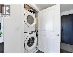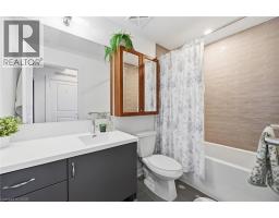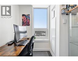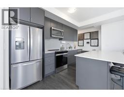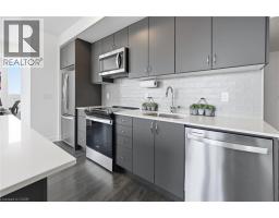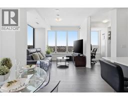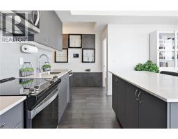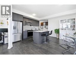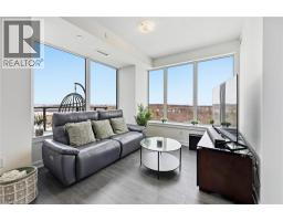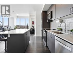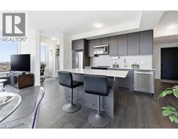 Finally!.. A top-suite, corner unit with (rare) dining room space... and on the quiet side of the building! Top 7 Reasons to Buy #1004: 1. Proper dining area; Finally a condo where you can actually entertain guests with a nice sit-down dinner. 2. This top floor location has no one above and only one next door neighbour; + 9ft ceilings. That combined with being on the quiet East facing side of the building makes it arguably the most peaceful and serene you can find! 3. Experienced condo buyers make light a priority, and 1004 gets so much light you feel like you're outside! 4. The view is what makes a condo special, And a Corner unit with unobstructed skyline views throughout the main living space and the den is rarely offered like this. 5. The Upper West Side Condos (by Branthaven) is known for its gorgeous common areas, high-end amenities, and central location; Concierge, secure automated parcel management, fitness centre with yoga studio, communal office spaces with a meeting room, upscale rooftop BBQ terrace with a fancy party room, pet spa and plenty of visitor parking. Lastly, the geothermal heating and cooling means eco friendly living with cost-savings. 6. Sought-after Joshua Meadows Location! Conveniently located near all major amenities and yet strategically tucked away; Minutes from Oakville's New State-of-the-art hospital, 407 and QEW. Walk 10 min to Oakville's main plaza, anchored by Walmart/Superstore, Starbucks and many restaurants and shops; also Buttonbush Woods Park is just around the corner. 7. 100% move-in-ready with top-quality finishes including the trendy open concept grey kitchen with a matching backsplash of hand-made style tile, quartz counters, full-size stainless-steel appliances, island upgrade, and matching extra storage built-ins. The bathroom includes an extra wide vanity with a chrome faucet, and congruent greys throughout the cabinets, flooring and shower tile; $10,000 of builder upgrades. Book this rare one of one before it's gone! (id:61594)