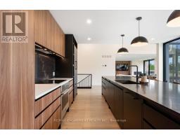 Welcome to 3207 Vivian Line -- an architectural masterpiece crafted by SMPL Design Studio, where modern design meets timeless sophistication. This one-of-a-kind residence features expansive floor-to-ceiling windows across the rear facade, flooding the home with natural light and offering a seamless connection to the outdoors. The heart of the home is the custom-designed kitchen with striking black and walnut cabinetry, a show-stopping 15-foot Vanilla Noir Caesarstone island, and a walk-in pantry for added function and style. The open-concept living and dining space is anchored by a sleek gas fireplace and light-toned engineered hardwood floors that flow throughout the main level. The home offers three main floor bedrooms, each with custom-built wardrobes. The primary suite includes a private 3-piece ensuite, while a separate 4-piece bath serves guests and family. The fully finished lower level adds a cozy rec room with a second gas fireplace, a fourth bedroom, an additional 3-piece bathroom, and ample storage. Outside, a modern concrete driveway leads to a spacious two-car garage. A perfect blend of form, function, and flair this home is a rare offering in a sought-after Stratford location. (id:61594)