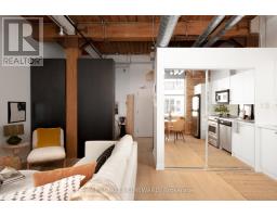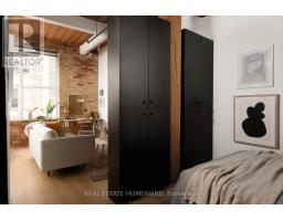 $440.95 MonthlyA true hard loft in one of Queen West's most iconic buildings - the Chocolate Company Lofts. Units here don't come up often! This renovated suite blends authentic brick-and-beam character with modern, thoughtful upgrades. Soaring ceilings, exposed brick, original wood beams, and oversized windows deliver the classic loft aesthetic - while recent renovations make it completely turnkey.The open-concept living/dining/kitchen space has been beautifully updated with new flooring, brand-new cabinetry and countertops, and a new heat pump ($8,500) providing efficient heating and cooling. The washroom has a brand new glass shower enclosure. This layout is flexible and functional, with ample space in the main living area for a dedicated work-from-home desk without compromising the flow of the space. The bedroom is well-proportioned and quietly set back, offering comfortable separation from the living area and generous closet space. In-suite laundry adds everyday convenience. Set directly across from Trinity Bellwoods Park, this location is very hard to beat. Step outside to Queen West's best cafés, restaurants, shops, and transit, with the park as your front yard. A rare opportunity to own a renovated hard loft in a landmark building-where original character meets modern comfort in one of Toronto's most sought-after neighbourhoods. (id:61594)