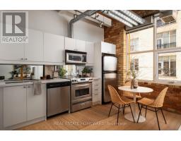 $440.95 MonthlyA true hard loft in one of Queen West's most iconic addresses - the Chocolate Company Lofts. Opportunities here are rare, and this newly refreshed suite is a standout. This thoughtfully renovated home pairs authentic brick-and-beam character with meaningful modern upgrades. Soaring ceilings, exposed brick, original wood beams, and oversized windows showcase the industrial charm loft lovers seek - now elevated with carefully selected improvements that make the space entirely move-in ready. The open-concept living, dining, and kitchen area has been completely reimagined with new flooring, brand-new cabinetry and countertops, and a newly installed heat pump ($8,500) provides efficient year-round heating and cooling. The kitchen offers space to dine in, while the generous living area allows for various flexible configurations (see various layouts in the photography). The washroom has been updated with a sleek new glass shower enclosure, adding a polished, contemporary finish. The bedroom is well proportioned and quietly tucked away, offering comfortable separation and ample closet space. In-suite laundry adds everyday practicality. Located directly across from Trinity Bellwoods Park, the setting is truly exceptional. Step outside to enjoy the very best of Queen West - acclaimed cafés, restaurants, boutiques, and convenient transit - all with the park as your front yard. A rare chance to own a renovated hard loft in a landmark building - where historic character meets modern comfort in one of Toronto's most coveted neighbourhoods. (id:61594)