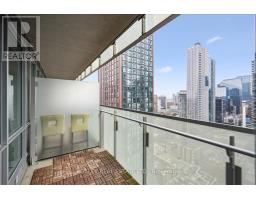 Festival Tower at TIFF Lightbox is a luxury condominium offering front row access to Toronto's Entertainment District. Exceptionally well maintained, this Pacino model offers 683 square feet with a smart 1 bedroom plus den layout, plus a spacious balcony with clear city views to the east and CN Tower and lake views to the south. Inside, you'll find hardwood floors throughout, a modern kitchen fitted with a full suite of Miele appliances, and ample storage. The built-in revolving TV and integrated sound system let you enjoy shows and music in both the living room and bedroom. Residents at Festival Tower have access to premium amenities, including a 55-seat private cinema, indoor pool, spa, and sauna, fully equipped fitness centre, yoga and pilates studio, rooftop sundeck, multiple lounges, 24hr concierge, and on-demand services including housekeeping, dog walking, dry cleaning and more. Living here also means being steps from TIFF premieres, theatres, restaurants, and nightlife, plus just minutes to the Financial District, CN Tower, Rogers Centre, and Scotiabank Arena. With the TTC streetcar right at your door and St. Andrew subway station nearby, getting around the city is seamless. This residence comes with both parking and a locker, rounding out the full package. (id:61594)
