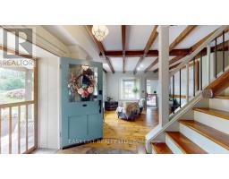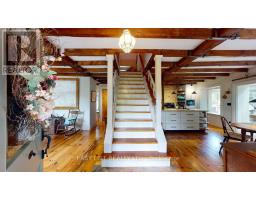 *** Visit the REALTOR website for further information about this Listing *** Beauty and seclusion combine to showcase this completely renovated 1830s fieldstone home, privately nestled at the end of a winding driveway on 8.8 acres of mature trees, perennial and vegetable gardens. The exterior stonework, hidden for a century, has been painstakingly restored while the interior updates include modernized mechanical systems and windows, all while preserving the charm of the original doors and trims. The main level showcases exposed beams, plank wood floors, a well-appointed kitchen, featuring a copper farmhouse sink, handcrafted cabinetry hardware, and custom lighting which extends into the adjoining dining room. A stunning stone wall is the backdrop to the adjacent great room, boasting a cathedral ceiling, skylights, in-floor radiant heat, and a pellet stove, with deck access overlooking serene gardens and a seasonal pond. A den/flex room, laundry/mudroom, and powder room complete this level in the main house. Upstairs finds a spacious primary bedroom with a 3-piece ensuite, two additional bedrooms (one currently used as an office), and a main 4-piece bathroom. Accessible from the main house, but also with its own separate entrance and generous deck, is a self-contained 950 sq ft secondary suite offering a huge main bedroom with sitting area, 3-piece bath, kitchen, powder room, and a combined living/dining area with a propane fireplace, making it perfect for today's multi-generational living. The property includes a large barn, ideal for storage and workshop space, plus two 12'x24' Amish Sheds (one used as a garage) and a smaller 10'x24' ideal for garden mower and tools. This exceptional home is conveniently located 10 minutes from Brockville, 45 minutes from Kingston, and 1.5 hours from Ottawa. (id:61594)