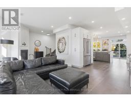 A One-of-a-Kind FREEHOLD Townhome in a Sought-After Community, Exceptional in both design and scale, this beautiful three-bedroom home stands apart as the largest and widest floorplan in this exclusive ten-residence enclave. Every detail has been carefully chosen, creating a bright, refined living space filled with natural light from its extra-large windows. The exterior blends brick, stone, and stucco with a striking 8-foot modern entrance door. Inside, you'll find 9-foot ceilings on every level, 8-foot solid interior wood doors, upgraded trim, and hardwood floors throughout no carpet anywhere. The custom kitchen is the heart of the home, featuring soft-close cabinetry, quartz countertops and backsplash, a waterfall island with undermount sink, KitchenAid appliances including a gas stove, and a built-in beverage fridge. The open-concept living area flows seamlessly and features a gas fireplace and Juliette balcony, creating a space that feels both stylish and inviting. The oak staircase with metal pickets and Hunter Douglas blinds continue the homes attention to detail. Upstairs, the primary suite offers a spa-like retreat with heated floors, a frameless glass shower, and double comfort-height vanities. Additional thoughtful upgrades such as custom closet organizers, LED pot lights, and a full-sized washer and dryer finishes the space beautifully. The appeal extends outdoors with a rare 375-square-foot rooftop terrace finished in cedar and complete with a gas line for barbecuing perfect for relaxing or entertaining under the open sky. Additional conveniences include inside garage entry, a large window in the garage, a covered second parking space, and an owned hot water tank. Located close to Downtown Burlington, shopping, schools, parks, the Burlington Centennial Bike Path, public transportation, major highways and the GO Train. This is a home worth seeing... you will truly be impressed. (id:61594)