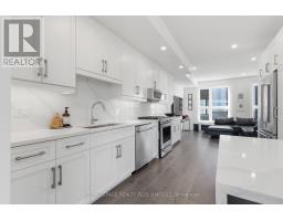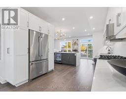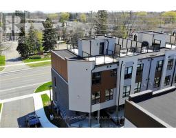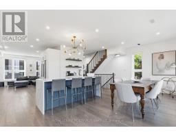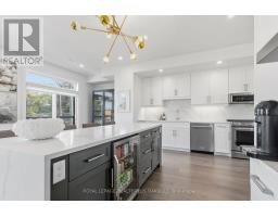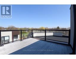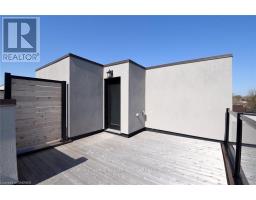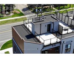 A One-of-a-Kind FREEHOLD Townhome in a Sought-After Community, Exceptional in both design and scale, this beautiful three-bedroom home stands apart as the largest and widest floorplan in this exclusive ten-residence enclave. Every detail has been carefully chosen, creating a bright, refined living space filled with natural light from its extra-large windows. The exterior blends brick, stone, and stucco with a striking 8-foot modern entrance door. Inside, you'll find 9-foot ceilings on every level, 8-foot solid interior wood doors, upgraded trim, and hardwood floors throughout no carpet anywhere. The custom kitchen is the heart of the home, featuring soft-close cabinetry, quartz countertops and backsplash, a waterfall island with undermount sink, KitchenAid appliances including a gas stove, and a built-in beverage fridge. The open-concept living area flows seamlessly and features a gas fireplace and Juliette balcony, creating a space that feels both stylish and inviting. The oak staircase with metal pickets and Hunter Douglas blinds continue the homes attention to detail. Upstairs, the primary suite offers a spa-like retreat with heated floors, a frameless glass shower, and double comfort-height vanities. Additional thoughtful upgrades such as custom closet organizers, LED pot lights, and a full-sized washer and dryer finishes the space beautifully. The appeal extends outdoors with a rare 375-square-foot rooftop terrace finished in cedar and complete with a gas line for barbecuing perfect for relaxing or entertaining under the open sky. Additional conveniences include inside garage entry, a large window in the garage, a covered second parking space, and an owned hot water tank. Located close to Downtown Burlington, shopping, schools, parks, the Burlington Centennial Bike Path, public transportation, major highways and the GO Train. This is a home worth seeing... you will truly be impressed. (id:61594)