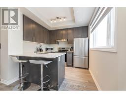 Welcome to this stunning 2-bedroom, 3-bath condo townhome featuring an impressive 300+ square foot terrace, perfect for entertaining, lounging, and enjoying BBQ dinners. Located in the vibrant Oakvillage community in north-central Oakville, this home combines modern design with smart home integration. Control everything from the intercom and doorbell camera to the thermostat, HVAC, and lighting using the in-home control pad or smartphone app. Ideal for entertaining, the open-concept main floor boasts a kitchen, living, and dining area with 9-foot ceilings and luxury vinyl plank flooring. The sleek kitchen is equipped with quartz countertops, stainless steel appliances, a cyclone ventilation hood, and a breakfast bar island for quick meals. Step out onto the balcony to savor your morning coffee or catch the evening breeze. The spacious primary bedroom features a walk-in closet and an upgraded 3-piece ensuite. Additional upgrades include quartz countertops in both full baths, hardwood stairs, and vinyl plank flooring in the hallways and bedrooms. An upper loft area offers the perfect space for an office, leading to the private rooftop terrace. This modern property promotes a healthy and welcoming environment, complete with courtyard planters, a social seating area, walkways, and ample underground visitor parking (id:61594)