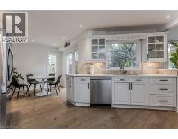Discover the perfect Family Lifestyle Location in this updated home with 3,479sqft total living space, nestled in one of Burlington’s most well-connected neighbourhoods. Fully renovated on the main and upper levels, it blends modern comfort with a dream family lifestyle setting. Backing onto a mini ravine with Ireland Park just beyond, and schools, parks, trails, amenities, and highway access mins away, life flows with ease. The exceptional curb appeal sets the tone—professionally landscaped, mature trees, all-brick façade, and a stone walkway lead to a double door entry. A side trail next to the home connects directly to the park, making family adventures effortless. Inside, the bright, open-concept main level is designed for family living and connection. Wide plank light oak hardwood and California shutters flow throughout. The living and dining spaces are perfect for gatherings, while the spacious eat-in kitchen impresses with custom cabinetry, quartz countertops, premium SS appliances, brick backsplash, and a breakfast nook w/ walkout to the rear deck. A sunken family room with a contemporary stone fireplace and gallery lighting invites memorable evenings. The convenience of a main-floor laundry room with side yard access is ideal for busy households. Upstairs, hardwood continues across 4 generous bedrooms. The expansive primary suite offers multiple oversized windows, a vanity nook, walk-in closet, and a spa-like ensuite with a glass shower and freestanding tub. A 4pc main bath with dual sinks completes this level. The lower level expands the lifestyle possibilities: a versatile rec room, kitchenette, additional bedroom with 2 large closets, and a 3pc bath—perfect for teens, in-laws, guests, or a nanny. Step outside to your private entertaining oasis. The fully fenced yard, mature trees, interlock patio, and spacious 2-tier deck set the stage for family BBQs, outdoor dining, and year-round fun. This is a home where families grow, gather, and truly live. (id:61594)