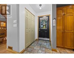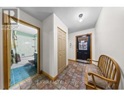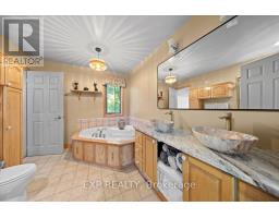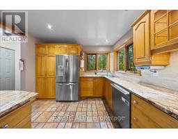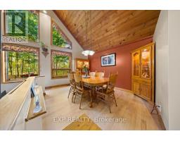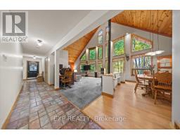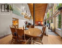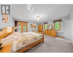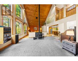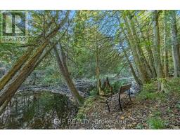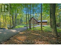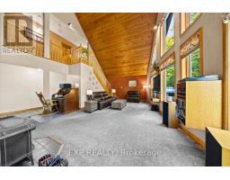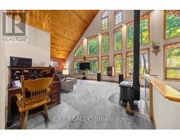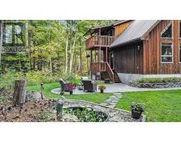 Welcome to your dream home! This stunning custom-built residence, clad in Western Red Cedar board & batten, is set on 6.27 acres of beautifully maintained, wooded land with a private driveway offering serene seclusion and natural beauty. The home features an energy-efficient geothermal heating and cooling system, a Vermont Castings wood stove, and top-tier insulation throughout both the house and garage for year-round comfort. Step inside to find a freshly painted main level with brand new carpeting and a thoughtfully designed layout featuring a full 3-piece bathroom, laundry room, bedroom, and a dramatic 26' vaulted ceiling with wall-to-wall windows that flood the space with natural light. The remodeled kitchen includes stainless steel appliances, granite countertops, and a convenient breakfast bar perfect for entertaining or everyday living. Upstairs, you'll find a cozy guest bedroom, a 4-piece bathroom with a luxurious therapeutic tub, and a spacious primary bedroom with a private balcony overlooking the peaceful, tree-lined surroundings. Both bathrooms have been updated with stylish new vanities, blending modern finishes with timeless charm. The finished basement offers a large recreation/exercise room, cold storage, and a utility/storage area. A pristine 5-car garage features an impeccably finished, climate-controlled workshop ideal for hobbyists or serious DIYers. Outside, enjoy a calming patio with a custom pond, a vegetable garden, a greenhouse, and ample storage buildings. Explore the scenic trails or relax beside the charming creek that runs through the property. This one-of-a-kind retreat blends comfort, functionality, and natural beauty an exceptional opportunity for those seeking privacy and connection to the outdoors. (id:61594)
