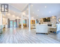Welcome to 3263 Guyatt Road a truly unique rural retreat just minutes from the heart of Binbrook. Nestled on a large, private lot with no rear neighbours and no neighbour to one side, this custom home backs directly onto a serene forest, offering ultimate privacy and a peaceful, nature filled setting. This thoughtfully designed, newly renovated, home features a full bathroom for every bedroom, with three of the four bedrooms offering private ensuites perfect for families or hosting guests in comfort. The primary suite is a luxurious escape, complete with a private balcony, spa-like ensuite, and a dry sauna for the ultimate in-home relaxation. With two furnaces and two air conditioners, year-round comfort is ensured. 3 fireplaces: gas, electric, and Wood(perfect for winter) will add to the coziness. The home also features a 2-car garage, a large driveway with ample parking, and a stone and stucco exterior that offers timeless curb appeal, and a fully finished basement for entertaining. The backyard is a dream come true for outdoor living. Enjoy a swim in the above-ground pool, relax under the gazebo, retreat to the detached sunroom/shed, or unwind in the hot tub gazebo with an outhouse-style setup all while surrounded by tranquil green space. Located just a short drive to Binbrook's town centre, this property offers the best of both worlds: peaceful country living with convenient access to amenities. A rare and special find in one of the areas most desirable rural pockets. (id:61594)