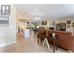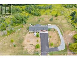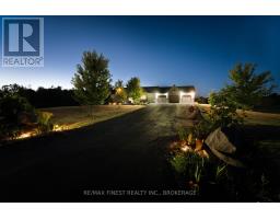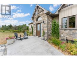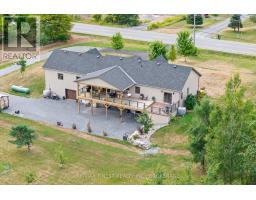 Thoughtfully designed, beautifully maintained, and upgraded throughout, this 5-year-oldbungalow offers a lifestyle as remarkable as its features. From the moment you arrive, the property's presence captivates with 3 acres of professionally landscaped grounds with trees, vibrant gardens, natural stone accents, and a 3-wide paved driveway that gracefully wraps around to the rear garage and patio. Inside, light-filled spaces blend comfort with sophistication. The open-concept main level is anchored by a stunning stone fireplace with a propane insert, creating a warm focal point in the living area. The kitchen showcases stone countertops, stainless steel appliances, and picturesque views of the private backyard. The primary suite is a retreat of its own, featuring a 4-piece ensuite with built-in vanity, walk-in closet, additional closet, and patio doors leading to a stamped-concrete balcony and an expansive 15x64' deck. A 30' section of this outdoor haven is fully covered, featuring a ceiling fan, pot lights, electrical outlets, and BBQ hookup - the perfect setting for morning coffee or evening gatherings. Two additional bedrooms and a 4-piece bath complete the main level. The lower level expands the possibilities with a large rec room, spacious bedroom, a separate den/home office, a 3-piece bathroom, generous storage, a walk-out to the yard, and direct access to the lower garage. This two-level heated garage  with six bays finished in epoxy provides endless options for a home workshop, car collection, or recreational toys. A dedicated backyard bar room, with a wet bar, epoxy flooring and a roll-up glass garage door opens to the patio below the deck, offering a distinctive venue for year-round entertaining. A 20KW Generac generator ensures peace of mind in all seasons. Positioned between Harrowsmith and Sydenham, this home combines the tranquility of rural living with access to local amenities and only 20 minutes to Kingston. (id:61594)