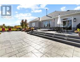 This Stunning Custom Builder Stucco/Stone Bungalow is situated on just over a half-acre private lot, offering a country feel while remaining close to city amenities. It boasts numerous upgrades from the builder and additional enhancements by the owners. Apx 5100 total square feet, finished top to bottom. The property features a gorgeous lot with a huge driveway accommodating 12+ cars (triple-wide at the garage). Inside, you'll find a 14' ceiling in the foyer, a front office/bedroom, a second bedroom, a main 4pc and a 2pc. Hardwood flooring extends throughout the main level, complemented by pot lights, O/S trim, crown molding, 9' doors, and transom windows, creating a bright yet cozy atmosphere. The large master at the rear includes a W/I and 5pc Ensuite with heated floors. The stunning great room offers an open concept design with vaulted ceilings and a floor-to-ceiling stone wood fireplace. The gourmet kitchen features a pantry, wine storage/cooler, B/I glass cupboards, an o/s island, and an o/s stainless steel fridge/freezer combo & gas stove. The DR provides a W/O to a 26x15 composite deck, 8-person hot tub, lighted stairs leading to a huge pattern concrete area-$40k and wrought iron fencing around the rear yard. The exterior is enhanced by mature trees and professional landscaping. The main floor also includes a laundry with a side door and a mudroom leading to a fully insulated garage with an epoxy floor and a gas heater. There is a separate staircase to the basement and a rear door. The gorgeous oak staircase leads to a spectacular Fin Basement with upgraded 9' ceilings, ideal for an in-law setup. It includes a huge R/R with a B/I projector and electric screen, a gas fpl, pot lights, and engineered hardwood t/out. There is a second kitchen with top-end appliances, two bedrooms with 4-piece ens (with heated floors), two exercise rooms (one could be a third bedroom), a utility room, a finished office, and a huge cold room. (id:61594)