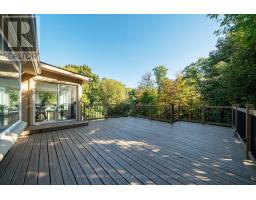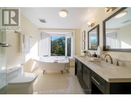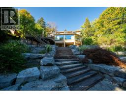 Grandly renovated 4-bedroom detached home with walkout basement on a rare 75' x 229' ravine lot in Mississauga's prestigious Credit Woodlands, featuring a saltwater pool, pond, and gazebo backing directly onto the Credit River. This luxury family home is within walking distance to 222-acre Erindale Park and the scenic Culham Trail, minutes from Mississauga Golf and Country Club, and offers quick access to major highways and GO Transit for easy commuting to Toronto and Hamilton. A mature, tree-lined street leads to a deep double driveway accommodating 8 cars plus a 2-car garage. An interlocking stone walkway and covered front veranda overlook perennial gardens with sprinkler system. The backyard is a private oasis with a massive deck, covered terrace, terraced gardens, custom saltwater pool with waterfall, serene pond with sheer descent waterfall, private gazebo, and expansive green space framed by ravine views. Recent upgrades include freshly painted interior, deck and gazebo, new furnace, air conditioner, pool heater and cover, some updated main floor windows and new backyard fencing (2025), plus a newer roof. Inside, hardwood flooring, crown mouldings, pot lighting, upgraded trims, two fireplaces, and three walkouts enhance sophistication. The skylit oak staircase opens to elegant living and dining rooms, a family room with fireplace, and a chef's kitchen with custom cabinetry, stone counters, stainless steel appliances, large island, and oversized breakfast room with walkout to deck. Upstairs, a sitting room, 2 bathrooms, and 4 spacious bedrooms are available, including a refined primary suite with a spa-like 5-piece ensuite featuring a claw-foot tub and a glass shower. The finished walkout lower level includes a recreation room with fireplace, coffered ceiling and built-ins, media/entertainment area, modern 3-piece bath, and 2 walkouts to the terrace overlooking the Credit River ravine. (id:61594)