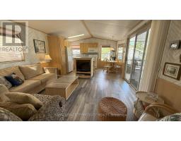 Welcome to Pioneer Point Resort! This 2007 Northlander Cottager (in service since 2010) offers 30-amp service, laminate flooring, ceramic backsplash, two entrances, and a full bathroom with skylight. Sleeps the whole family with a queen bed, double bunk with storage, and pull-out couch. Bright and open with a large storage closet for convenience. Step outside to a 14x40 deck spanning the trailer, complete with a solid hard top cover, plus an outdoor shed. Surrounded by trees and nature, it's the perfect seasonal getaway. Resort amenities include two pools, private beach, pickleball, bouncy pillow, volleyball, horseshoes, kids club, and weekly summer events.2025 park fees of $5,650 + HST and $300 hydro deposit are already paid. Resort open May 3- Oct 20, with optional dock rentals available. A turnkey seasonal escape just minutes from the beach, don't miss it! (id:61594)