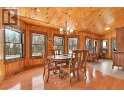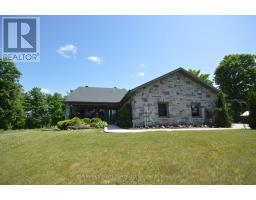 Custom brick bungalow built in 2016 situated on over 31 acres, with a double car attached garage. Open concept living, kitchen, with island, dining room and living room with propane fireplace. Main floor also includes 2 bedrooms, primary bedroom includes a 3 piece en suite, a sperate office, 4 piece bathroom and large laundry room. Partially finished lower level has a rec room, 3 piece bath and walk out entrance. There are plenty of windows throughout, a wrap around deck and a fully insulated separate shop. Maintenance free home, just move in and enjoy. Please allow 24 hours irrevocable on all offers. (id:61594)