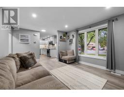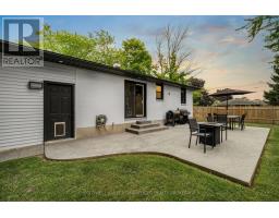 This charming brick bungalow is tucked away on a quiet street in Exeter, offering privacy, and modern updates. With no rear yard neighbours, the fully fenced backyard is a private retreat featuring a large stamped concrete patio and a garden shed for extra storage. The oversized one-car attached garage provides ample space for parking and additional storage. Inside, the home has been tastefully updated over the past four years, including new flooring, trim, paint, pot lights, and more. The bright white kitchen, accented with black hardware, opens to the dining area with a sliding patio door that leads directly to the backyard. An island with seating currently anchors the space, but it can easily be replaced with a traditional dining table to suit your needs. The main floor also features a spacious living room filled with natural light, a stylish three-piece bathroom with a large soaker tub and tile surround, and a cozy bedroom with a feature wall and built-in closet storage. Downstairs, the lower level serves as a private primary retreat complete with a generous bedroom, walk-in closet, and a three-piece en suite. A dedicated laundry and mechanical room offers practical utility space. With gas heating, central air, a 100-amp breaker panel, and great curb appeal, this move-in ready home combines comfort, style, and a convenient Exeter location. (id:61594)