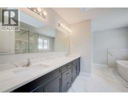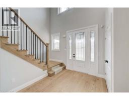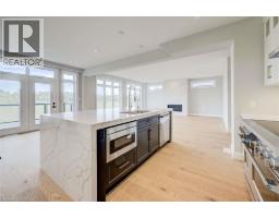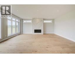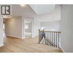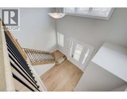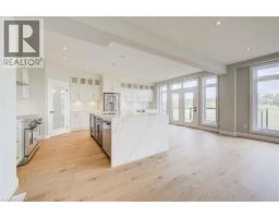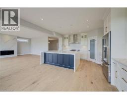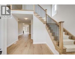 For more info on this property, please click the Brochure button. Backing onto the beautiful Grand River Valley, offering 3,621 finished sq. ft., an attached double garage, paved driveway, rear deck, and an unfinished walk-out basement with excellent potential for additional living space. Inside, the airy foyer soars with an upper window and skylight that flood the space with natural light. The main floor (9-ft ceilings) features a family room, kitchen, dinette, dining room, den, and a three-piece bathroom. The family room is framed by large windows with valley views and includes a modern linear gas fireplace and bright recessed pot lights. The chef’s kitchen—also bathed in natural light—showcases upgraded white, ceiling-height cabinetry with upper glass doors, premium quartz countertops, six professional appliances, and a walk-in pantry. An expansive black island with breakfast bar doubles as a workspace and gathering hub, topped with marbled quartz that cascades in a dramatic waterfall edge. The generous dinette accommodates a large table, with sizable windows and a glass terrace door that opens to the rear deck. Durable hardwood spans the main level (tile in the bathroom), and an oak staircase is illuminated by a landing window. Upstairs, the primary suite boasts a coffered ceiling, a generous walk-in closet, and a spa-style ensuite with a free-standing soaker tub, tiled shower with glass surround, skylight, and a separate toilet room. Three additional bedrooms, a main bathroom with skylight, and a conveniently located laundry room (washer and dryer included) complete the upper level. With abundant space, premium finishes, and a scenic setting, this new home is finished and move-in ready. Property not yet assessed. (id:61594)