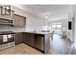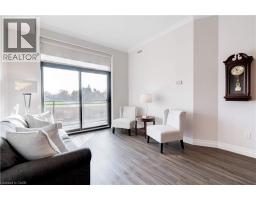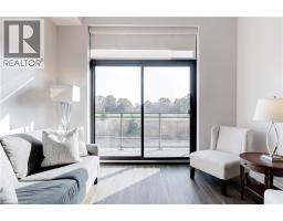 Welcome to the THE GARDENS BY MARANATHA a fully wheelchair accessible 55+ community in the heart of South Burlington. This spacious 1 bedroom plus den life lease suite offers 950 sq. ft. of bright, open-concept living. Features include a kitchen with stainless steel appliances and ample cabinetry, dining area and a living room with walkout to a south facing balcony overlooking views of mature trees and open green space. The primary suite offers a walk in closet and wheelchair accessible en-suite with roll in shower. A second 2 piece bathroom and in-suite laundry complete the unit. Amenities: lounge, coffee shop, workshop, fitness room, party room, meeting room, outdoor terrace, underground parking and lockers. Steps to shopping, parks, churches, transit, lakefront trails, hospital, senior centre, library, and downtown Burlington. Condo fees include insurance, maintenance, common elements, landscaping, heat, parking, snow removal, and water. (id:61594)