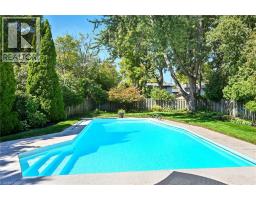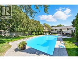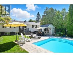 Beautiful Bungalow in the desirable Roseland neighbourhood on a gorgeous premium private mature lot with in ground heated concrete pool refinished 2025. Over 2223 sf of updated finished living space. Steps to all amenities including Tuck and Nelson Schools, Tuck park, Paletta Mansion park and Lake Ontario. Features include extensive landscaping front and back with Fraser Wood - Board and Batten siding, hardscape flagstone/pool patios, custom Gazebo with serving windows, a double drive and double garage with inside entry. New front entrance door 2021 with side light windows, open concept main floor - tastefully updated with solid hardwood flooring throughout the main level, crown moulding, trim/baseboard, large bright windows with custom coverings/blinds, Valor gas fireplace in living room, gourmet eat-in kitchen with an inviting sit up island for entertaining, new SS Kitchen appliances 2020. Walkout to your backyard oasis with total privacy, lush gardens/landscape, warm heated pool and plenty of grass for family pets/children to play. 3+1 bedrooms, large family room with two large above grade windows, built in electric linear fireplace, accent TV wall with shelving. Large laundry room, two separate storage closets. Sure to impress and move-in ready. (id:61594)